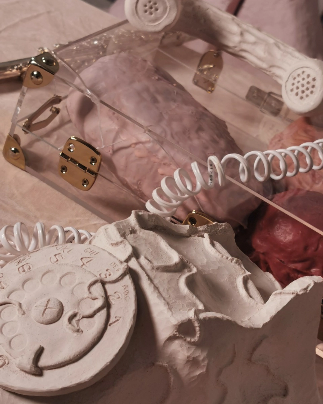 Forméx à la sculpture, à la performance et à l'électroacoustique, Côme développe une pratique multimédia profondément ancrée dans la matérialité du vivant, l'hybridation des corps et la dramaturgie des systèmes. Son travail explore la zone trouble où la chair, les objets, les institutions et les langages se contaminent, se dévorent, se digèrent mutuellement. Artiste en résidence à La Station, iel conçoit des environnements où chaque élément — installation, costume, organe-sculpture, vidéo, son, écriture — peut devenir acteur, décor ou interface.