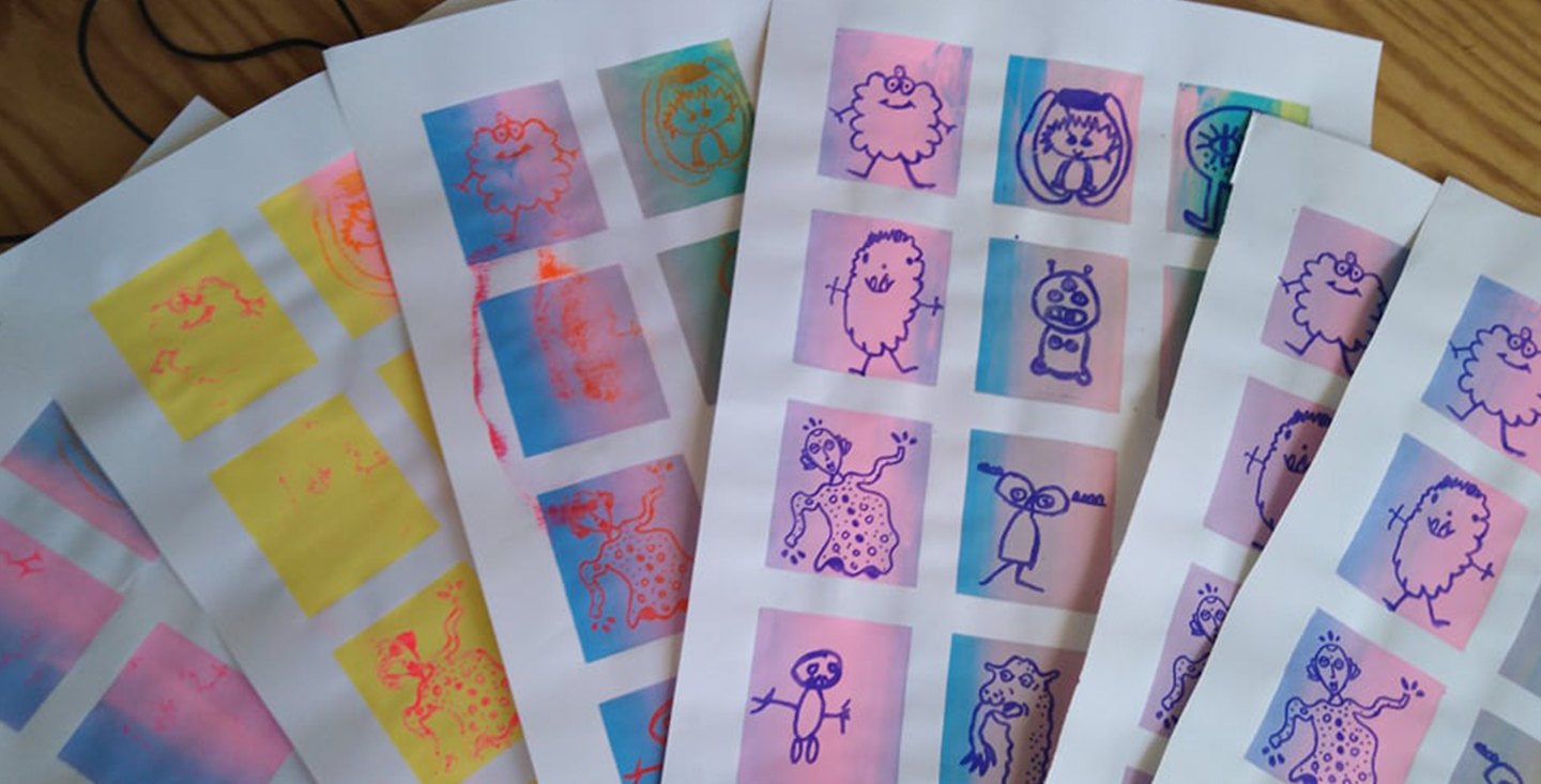 Pour cet atelier, nous avons invité les enfants inscrits à l’association Ney Village à venir découvrir l’atelier de sérigraphie de la Station - Gare des Mines dirigé par Célia Gaultier. Pour l’occasion, nous avons également invité l’artiste pluridisciplinaire Raphaël Serres à collaborer avec nous et nous interroger sur la figure du monstre ainsi que celle du bestiaire. Également inspiré par les Yokai Japonais, esprits et créatures surnaturelles, Raphaël Serres voit dans le monstre un moyen de parler de son quotidien, de son quartier, et des entités qui y habitent.