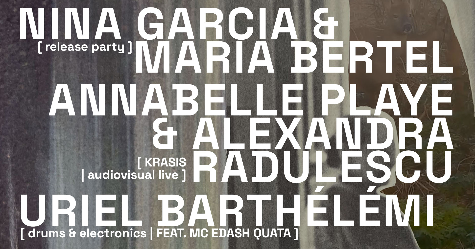 Le batteur et musicien électronique crée un solo ultra énergique, mariant intimement batterie et électronique (synthés modulaires, effets et programmation max msp), pour faire apparaitre une musique à la fois dansante et expérimentale. Se jouant des codes, développant un univers sonore mi-sérieux-mi-ironique, quelques mélodies hyperpop sont finement mais allègrement démolies par les sons harsh des machines contrôlées par la batterie, emmenant dans une transe rythmique. Dans son jeu de batterie, Uriel Barthélémi fait entrer les styles en collision : il intègre les héritages de la drum&bass, du krautrock, des musiques improvisées et contemporaines, du jazz et du hip hop, mélangeant le tout, créant des clashs esthétiques. Il jouera nombre des morceaux de son prochain album à paraître en 2024 et sera rejoint par moments par le MC Edash Quata.