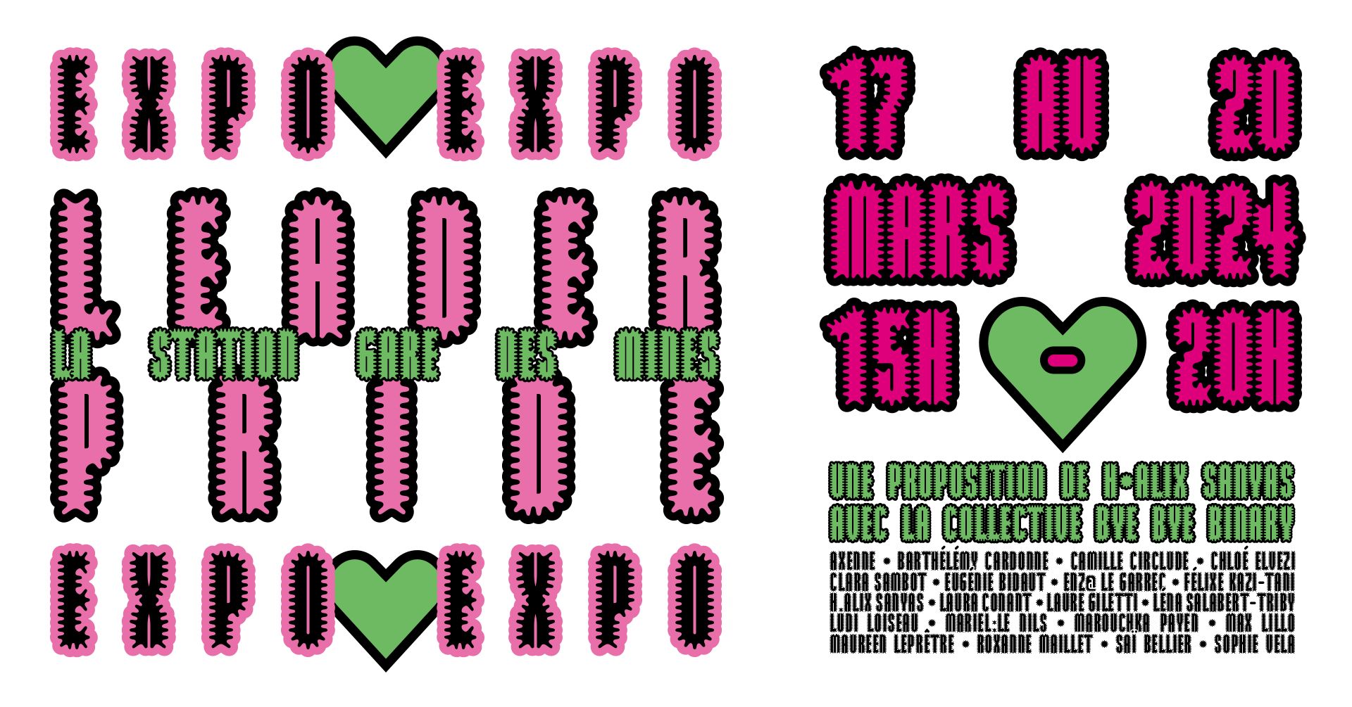 À l’issue d’une résidence croisée entre La Station — Gare des Mines et le 6B, H·Alix Sanyas présente “LEADER PRIDE” aux côtés de Bye Bye Binary, collective belgo-française de typo·graphistes détournant les outils 'straight' du design pour répandre sous licence libre de nouveaux glyphes débinarisants. La résidence a permis d’initier la création d’une fonte à haut potentiel de lisibilité comprenant deux variantes : LOVE & RAGE.