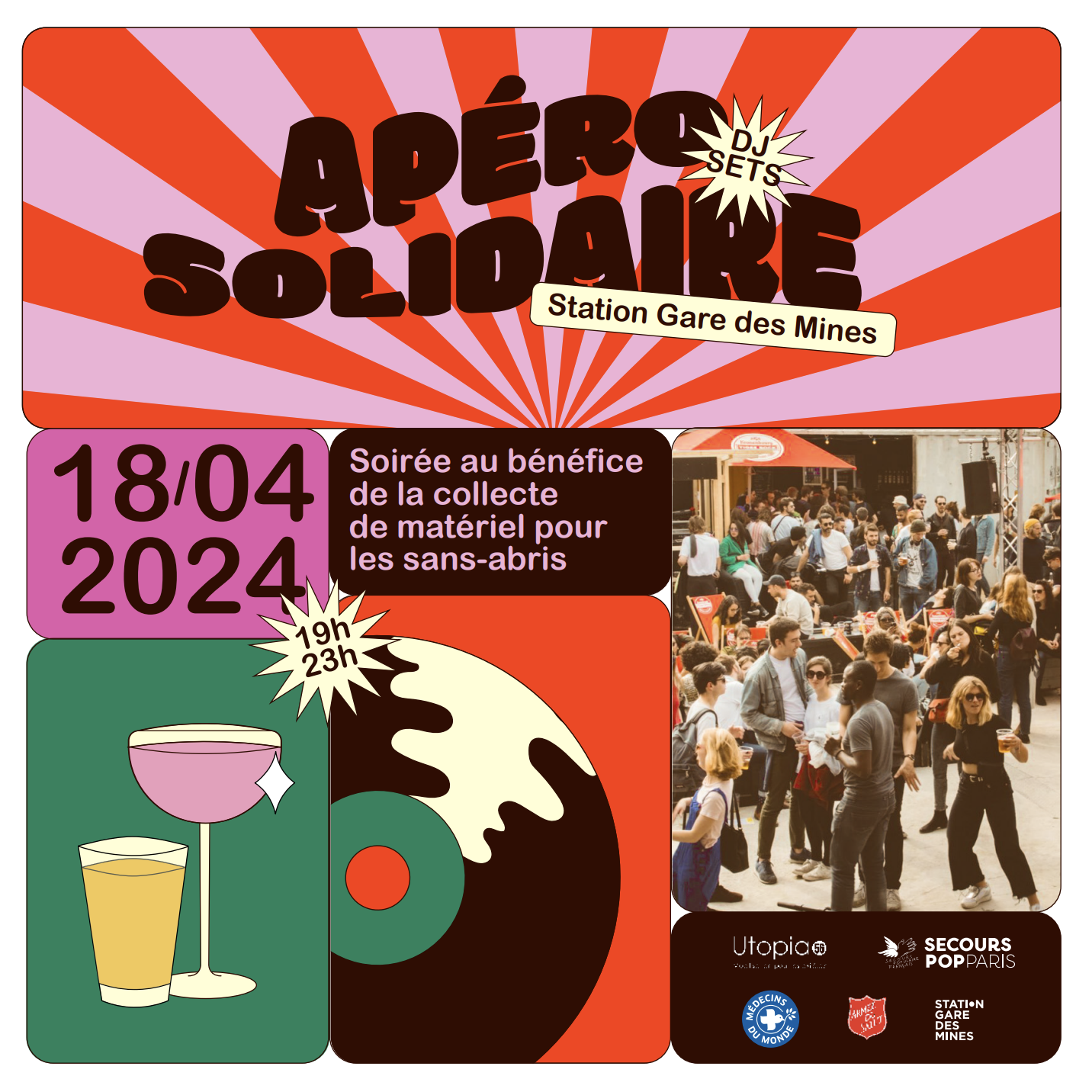 Le collectif inter-orga, qui regroupe des dizaines d’associations qui interviennent auprès des sans-abris et dans les campements d’exilés à Paris, organise un apéro solidaire chez les amis de la @stationgaredesmines !