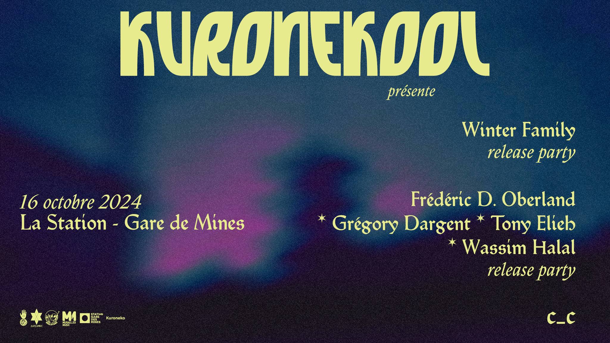 KURONEKOOL revient une deuxième fois en 2024 et présente les releases party de WINTER FAMILY et du super groupe Frédéric D. Oberland, Grégory Dargent, Tony Elieb, Wassim Halal, suivies d'un live de C_C.