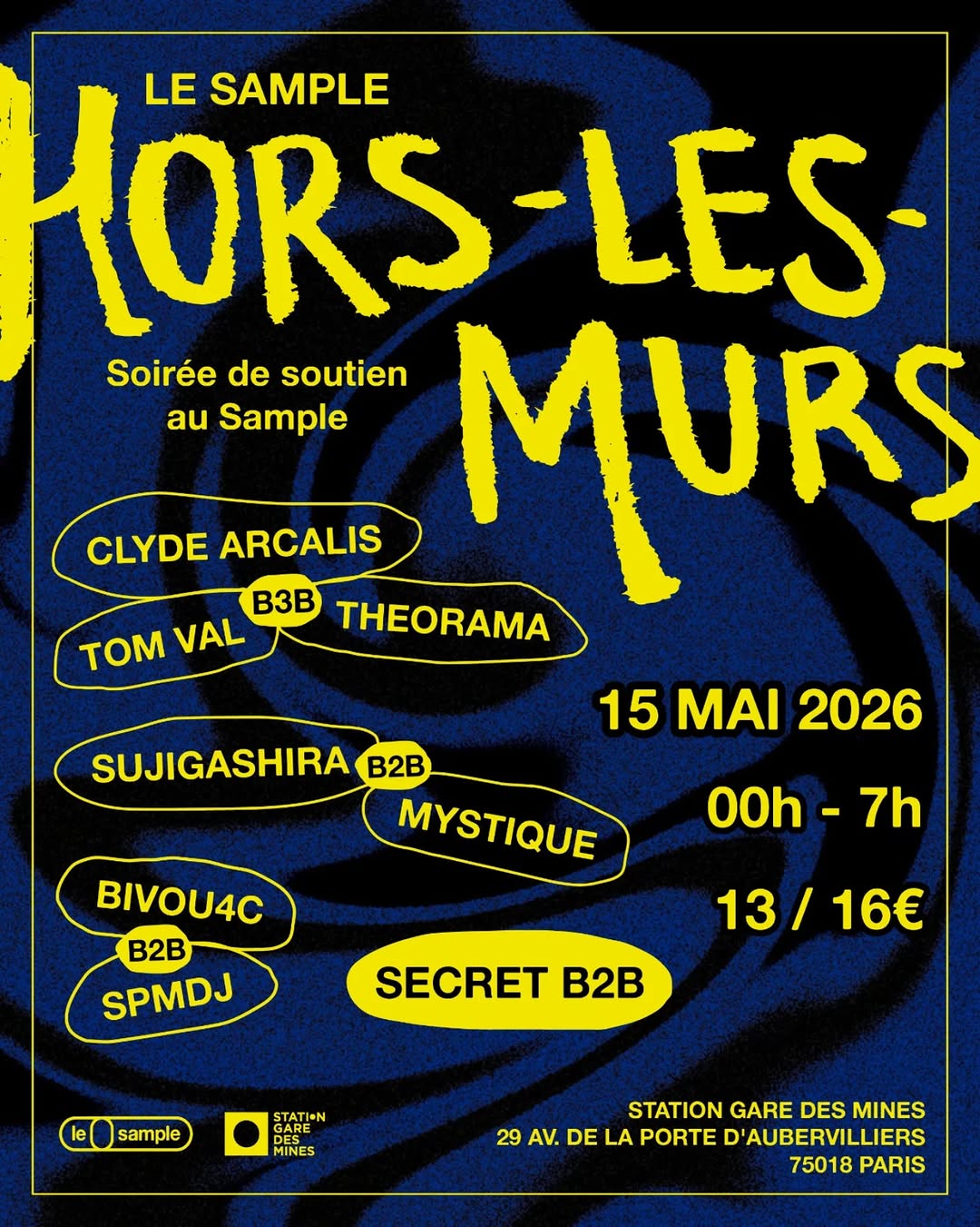 ⬤ ven. 15 mai — Soirée de soutien au Sample (club)