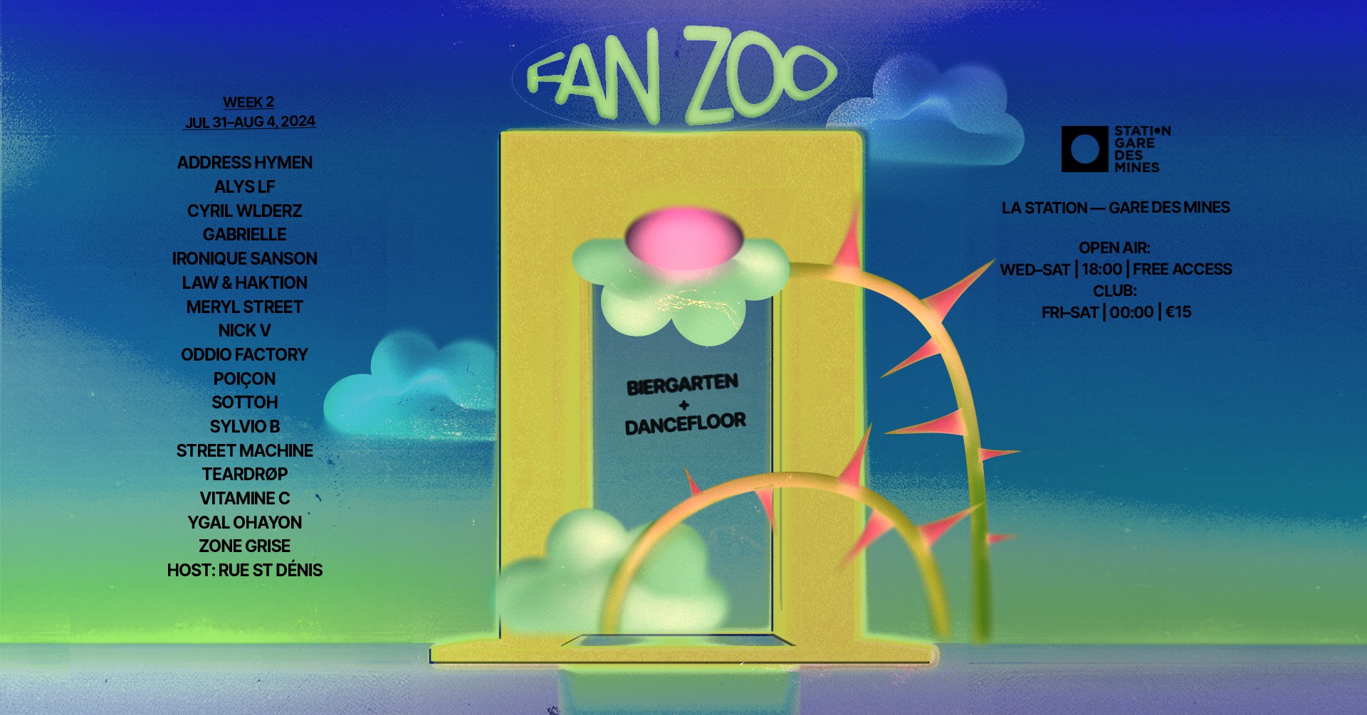 From July 24 to August 10, during the Olympic Games, La Station - Gare des Mines will not be a fan zone, but a fan zoo, bringing together a colourful and festive crowd of night owls and diurnal animals 4 days a week, from dusk till dawn, between open air and indoor dancefloor.