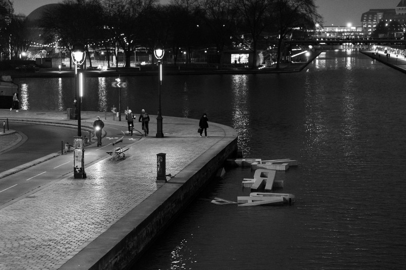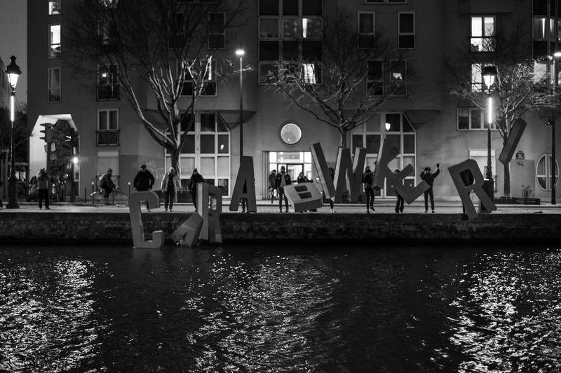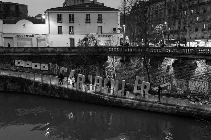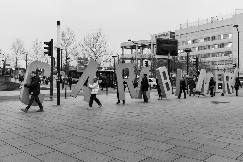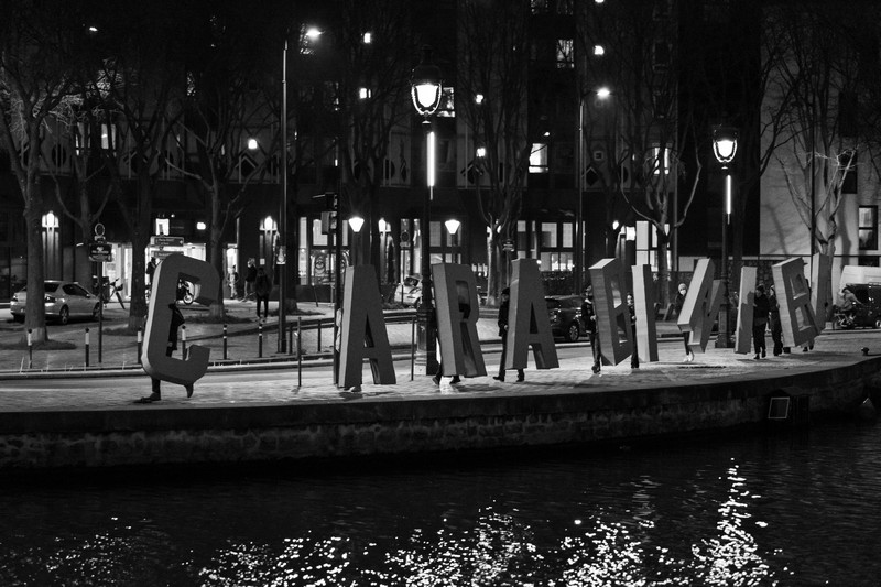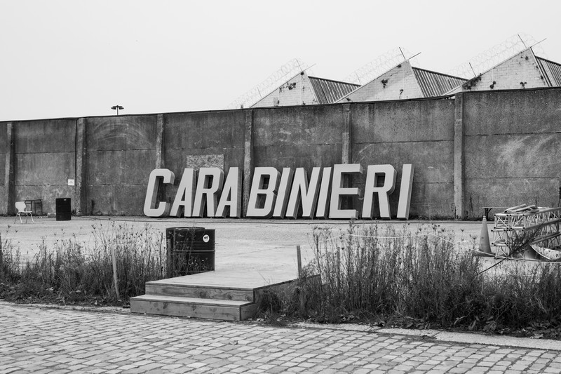 Depuis octobre 2020, Dominique Mathieu donne cours à la Station - Gare des Mines. Pour le premier semestre 2021, un groupe d’étudiant·es, a reproduit un ensemble de lettres en carton, en vue de ré-activer la performance Carabinieri (1968 / Palazzo comunale, Novara - Italie) de l’artiste Gianni Pettena. Le jeudi 27 janvier le mot a été transporté aux abords du canal de l'Ourcq à l’occasion de l'exposition Gianni Pettena, architecte par nature à la galerie Salle Principale.