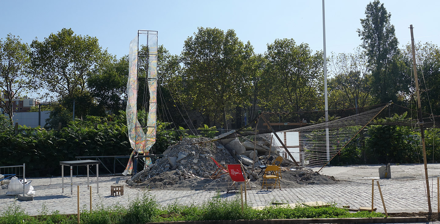 Olivier Jeudy a proposé aux étudiant·e·s d’intervenir physiquement sur le site de la Station Nord. La mise en œuvre de dispositifs expérimentaux, de scénographies urbaines, d’architectures ou de paysages éphémères, consistait à révéler des potentialités du lieu, à produire des imaginaires urbains possibles avec les matérialités en présence.