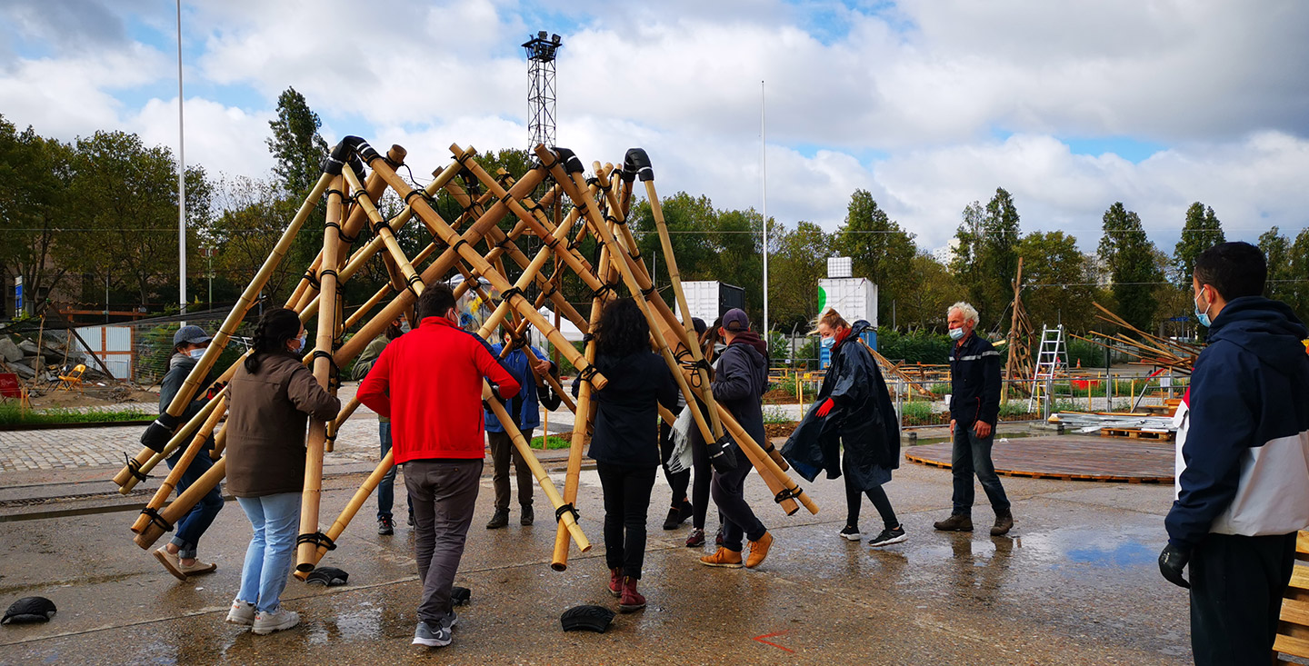 En reprenant le titre PERSONA GRATA des expositions ayant eu lieu du 16 octobre 2018 au 20 janvier 2019 au MAC VAL et au Musée national de l’histoire de l’immigration, Yves Mahieu et Antoine Petitrenaud ont proposé d‘interroger la notion d’hospitalité, en se confrontant à la conception d’une structure mobile urbaine, en développant une démarche réellement écologique avec la préoccupation d’un rapport optimisé entre structure et forme…