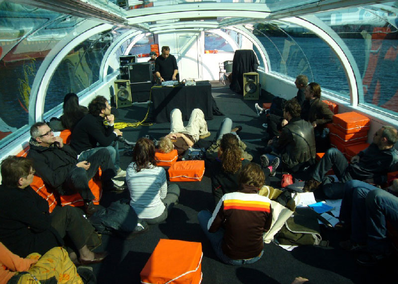 A l’arrivée de ce périple à Strasbourg, un salon d’écoute flottant a permis d’explorer cet archipel de créations durant sept croisières sonores panoramiques : embarqué sur un bateau-mouche spécialement aménagé (quadriphonie), le public a pu découvrir les pièces réalisées à bord par les résidents et les paysages imaginés par une dizaine de compositeurs invités.