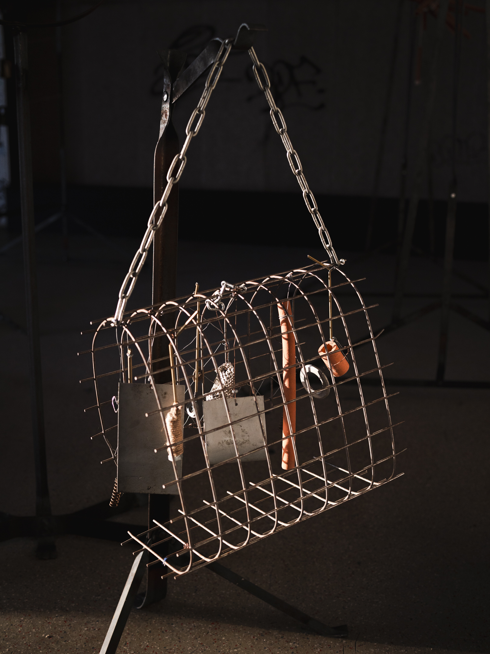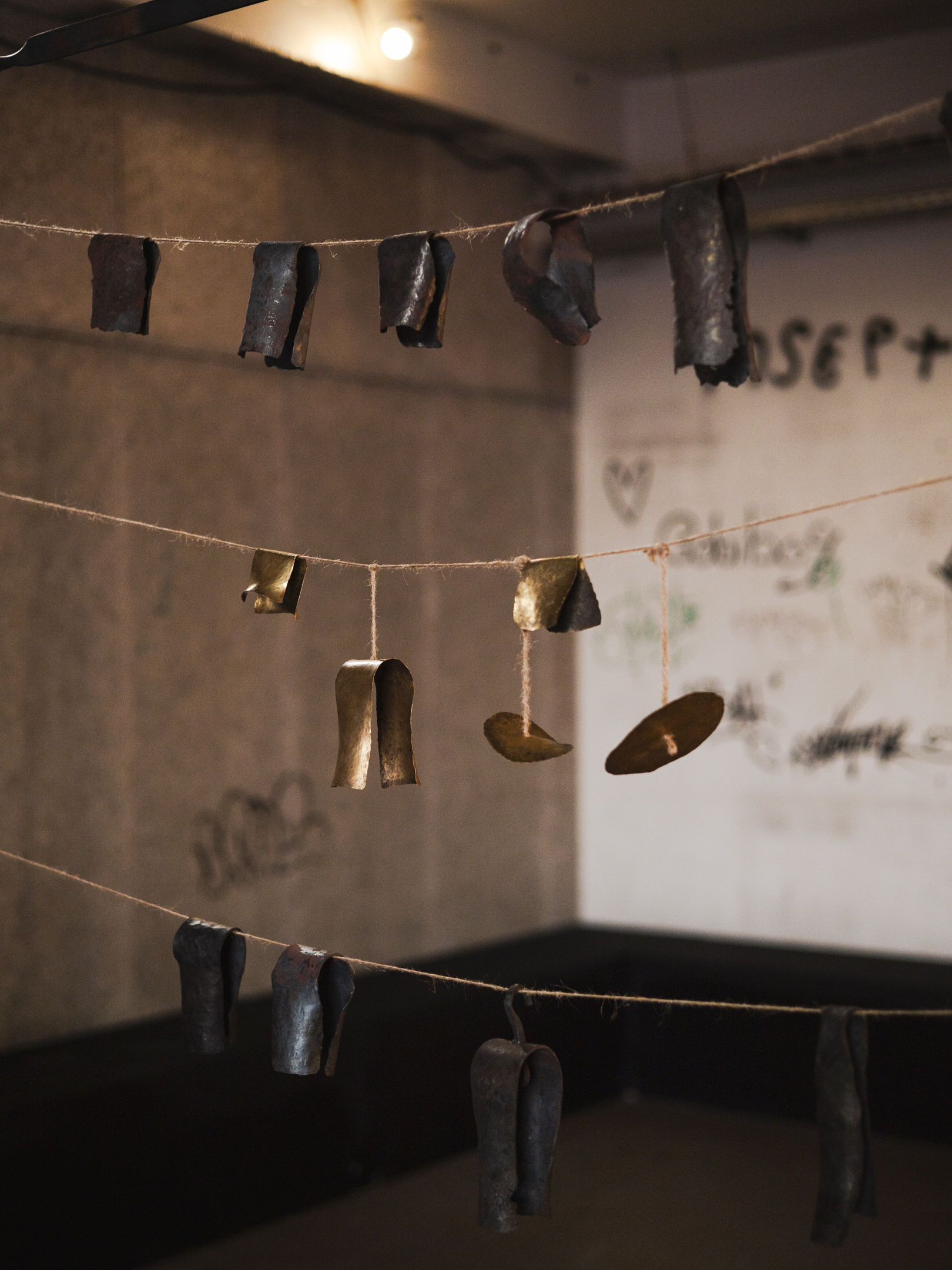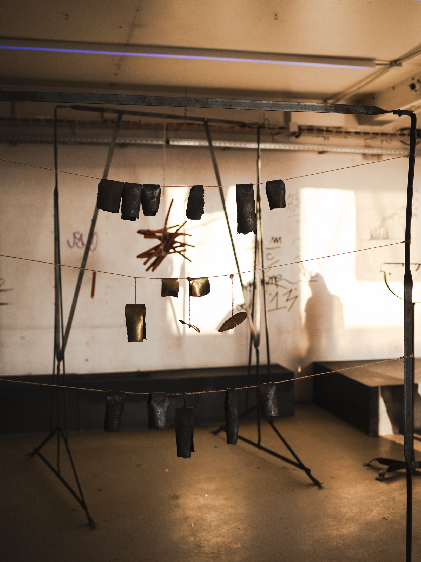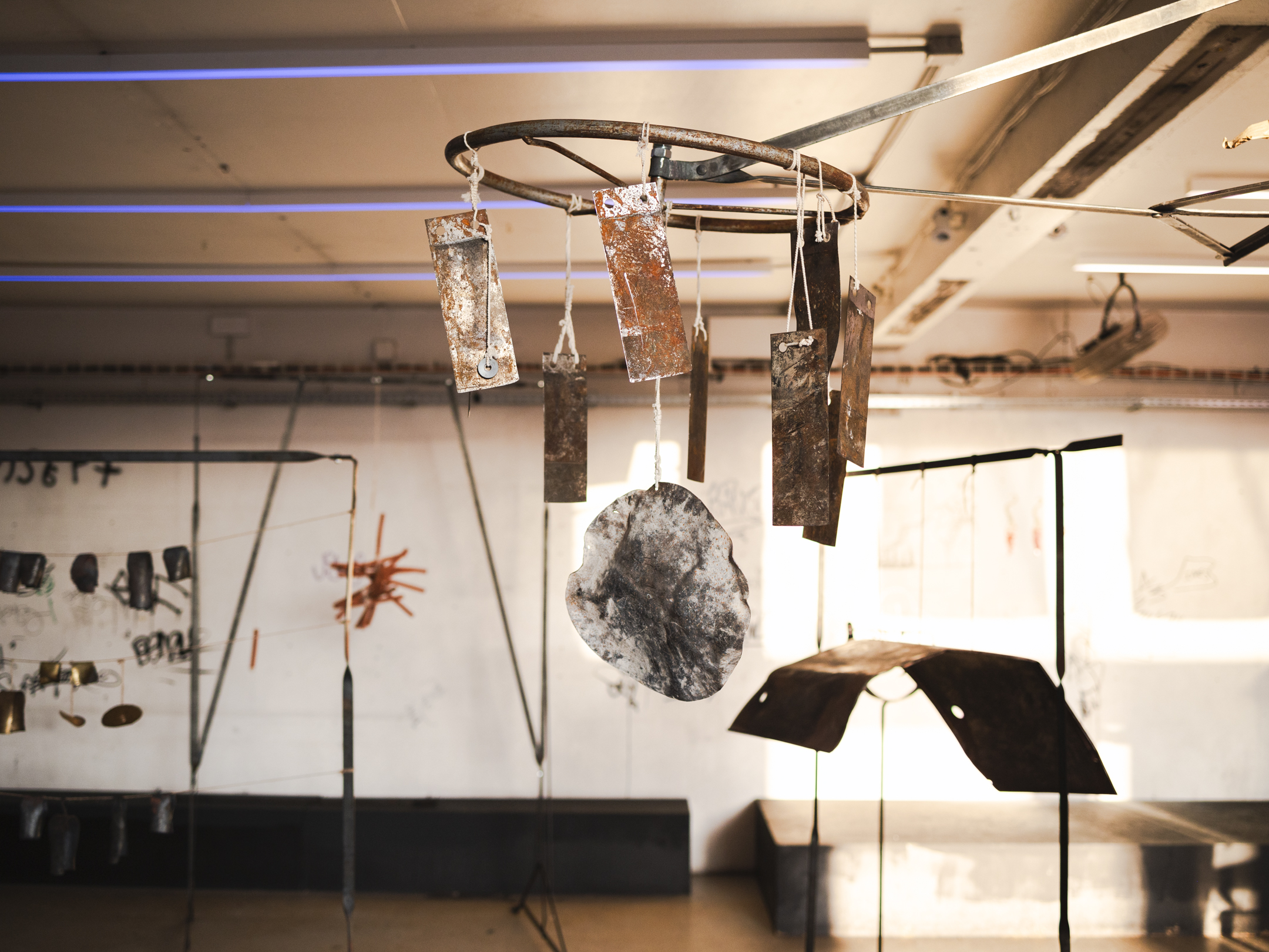 Les artistes ont transmis à tour de rôle des gestes et des savoir-faire anciens en explorant les usages du métal. Ces pièces ont été assemblées pour former un grand ensemble en fer forgé, à la fois sculpture et instrument à faire sonner.