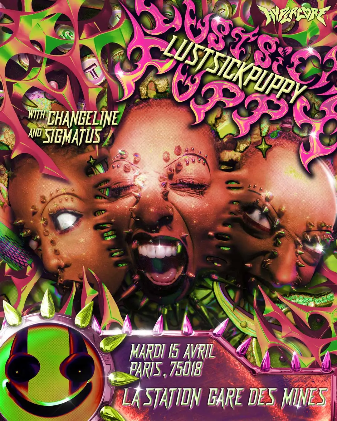HYPERCORE PRESENTS: LUSTSICKPUPPY (with Changeline and Sigmatus) PARIS GET FUCKING READY! LustSickPuppy is adding a Paris date to their Europe tour, backed up by Changeline and Sigmatus ! Born and raised in Crown Heights, Brooklyn, LustSickPuppy is a curator of chaos, invoking spirits through shared ritual. Blending elements of punk, gabber, drum n bass and rap, they deliver warped melodies over hyperactive beats at breakneck speed. Equal parts glitter and blood, their shows are raw and unpredictable, a live rave liturgy taking audiences by the leash while offering the ride of a lifetime.