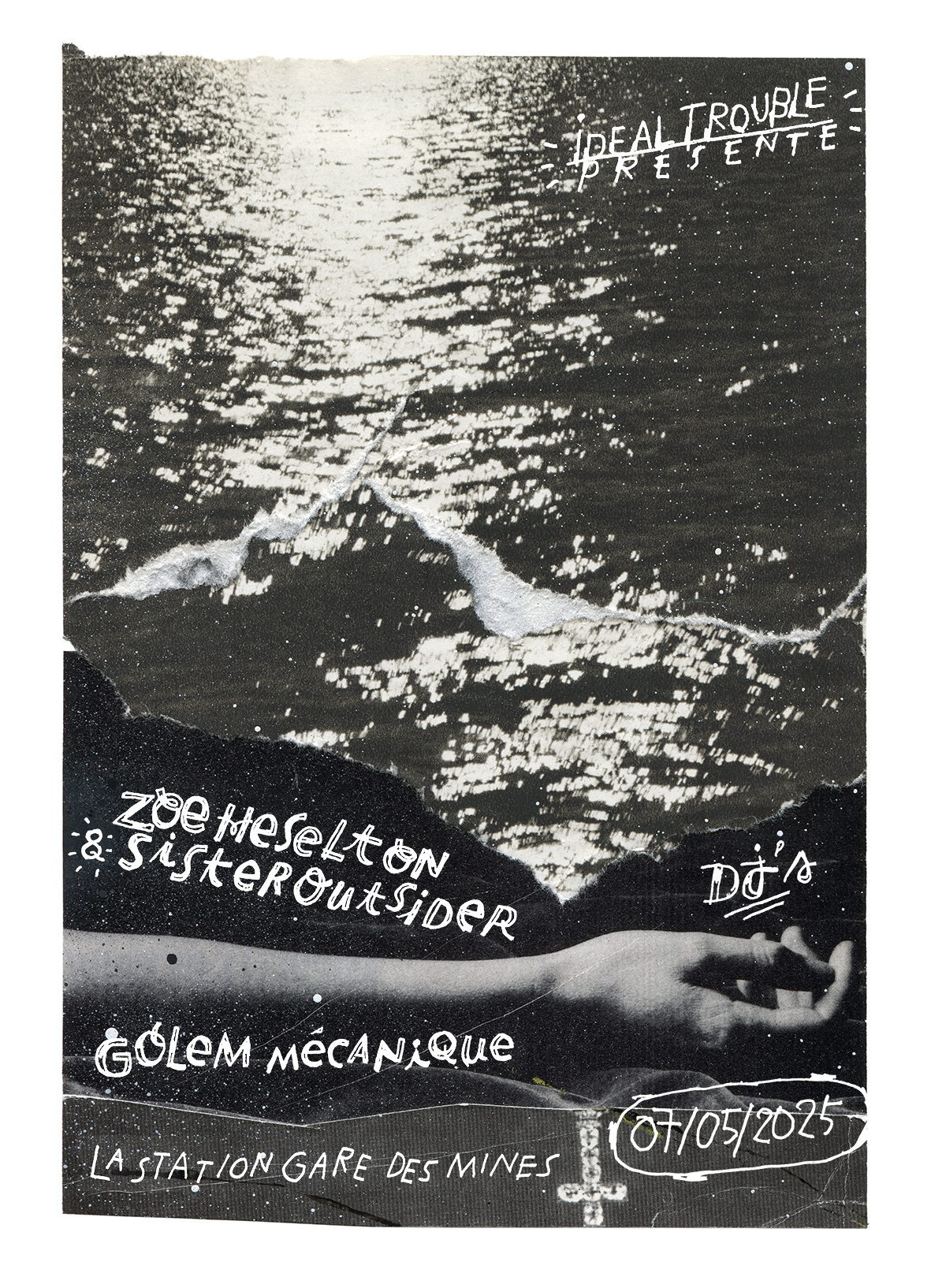 Poésie scandée, arpèges rythmiques de guitare électrique, lignes de basse dépouillées, la musique de Zoé Heselton vacille entre ritournelles et vagues bruyantes, mélodies mélancoliques et folk music aux influences post punk et nueva canción. Des chants de marin pour traverser la tristesse, et des poèmes comme des prières, pour cultiver l'espoir, chanter la tendresse, et la rage, faire briller le noir dans le noir. On pense à Current 93, Beat Happening ou Cindy Lee. Elle présentera ce soir-là son premier album "Another kind of suicide" (Teenage Menopause) accompagnée comme rarement, en full band, par l'ensemble des Sister Outsider, sa famille choisie de belles âmes musicien·nes.