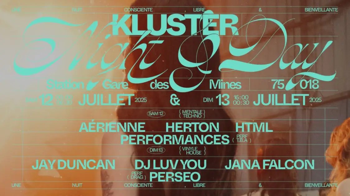 Entre les deux ? Performances, surprises, et toujours cette envie de rassembler autour de ce qui fait le cœur de Kluster : la fête libre, consciente et bienveillante.