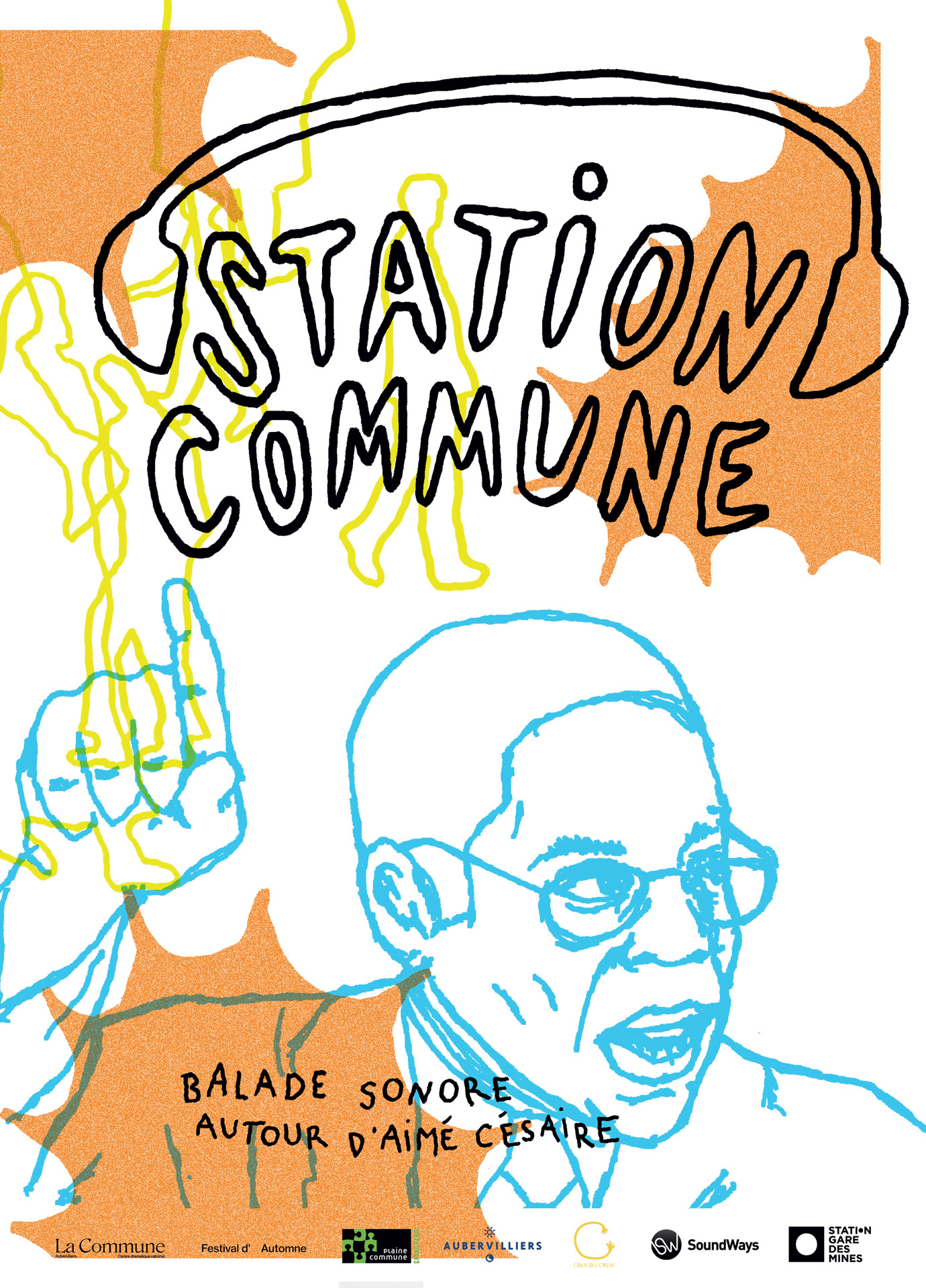 Les échos de Station Commune résonnent autour de la station de métro Aimé Césaire, s’inspirant librement du poète de la négritude. Ses mots et ses idées s’entrelacent avec les voix, les langues et les récits recueillis auprès d’exilé·e·s accueillis par le Coucou Crew - espace d’accueil pour mineurs basé à La Station — Gare des Mines et à l’Ecole des Actes. Ces rencontres tissent un dialogue inédit entre histoires partagées et cultures croisées.